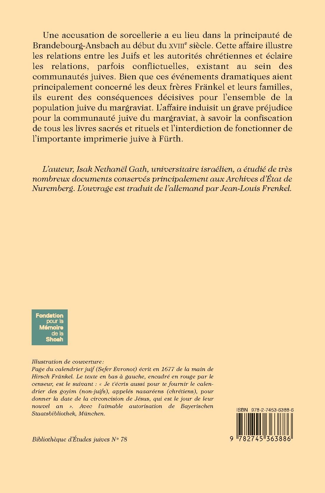 L’auteur, Isak Nethanël Gath, universitaire israélien, a étudié de très nombreux documents conservés principalement aux Archives d’État de Nuremberg. L’ouvrage est traduit de l’allemand par Jean-Louis Frenkel.