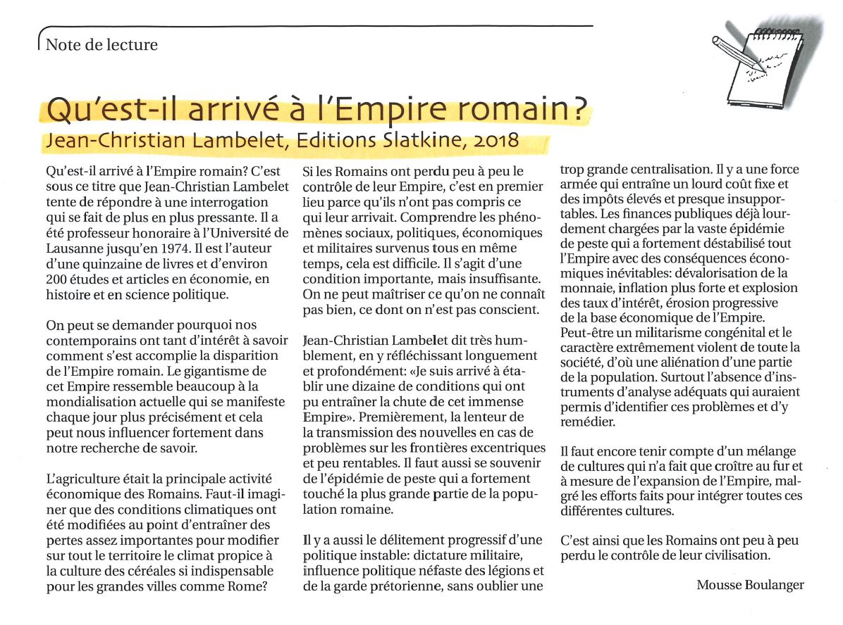Né en 1938, Jean-Christian Lambelet est professeur honoraire à l’Université de Lausanne où il a enseigné la macroéconomie, l’histoire économique et les méthodes quantitatives jusqu’en 2004. Il est l’auteur d’une quinzaine de livres et d’environ deux cents études et articles en économie, en histoire et en science politique.