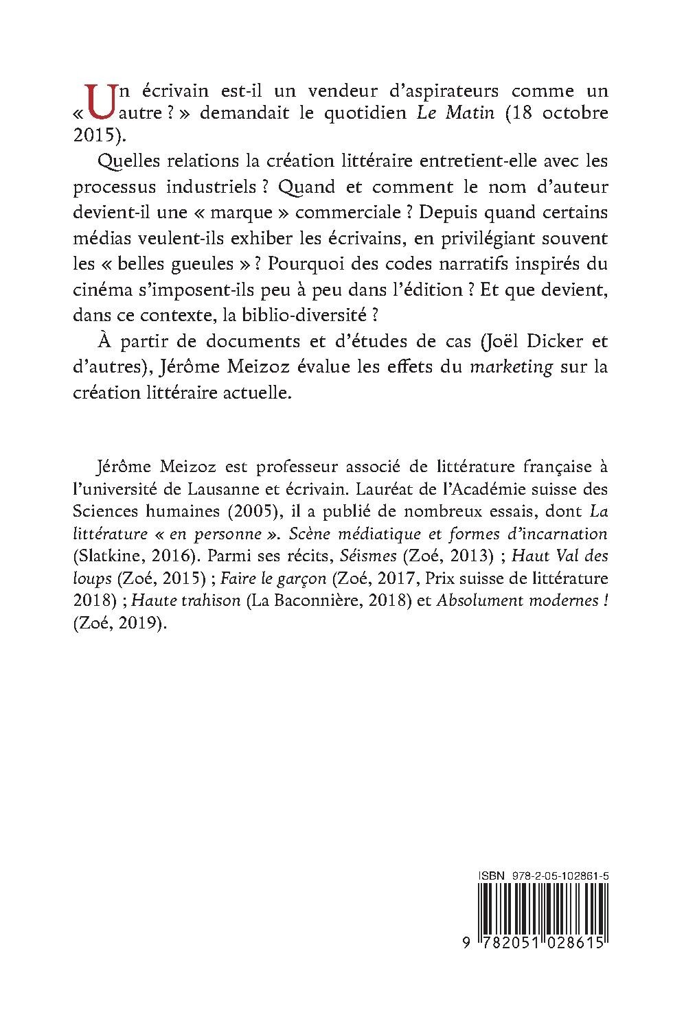 À partir de documents et d’études de cas (Joël Dicker et d’autres), Jérôme Meizoz évalue les effets du marketing sur la création littéraire actuelle. Jérôme Meizoz est professeur associé de littérature française à l’université de Lausanne et écrivain.
